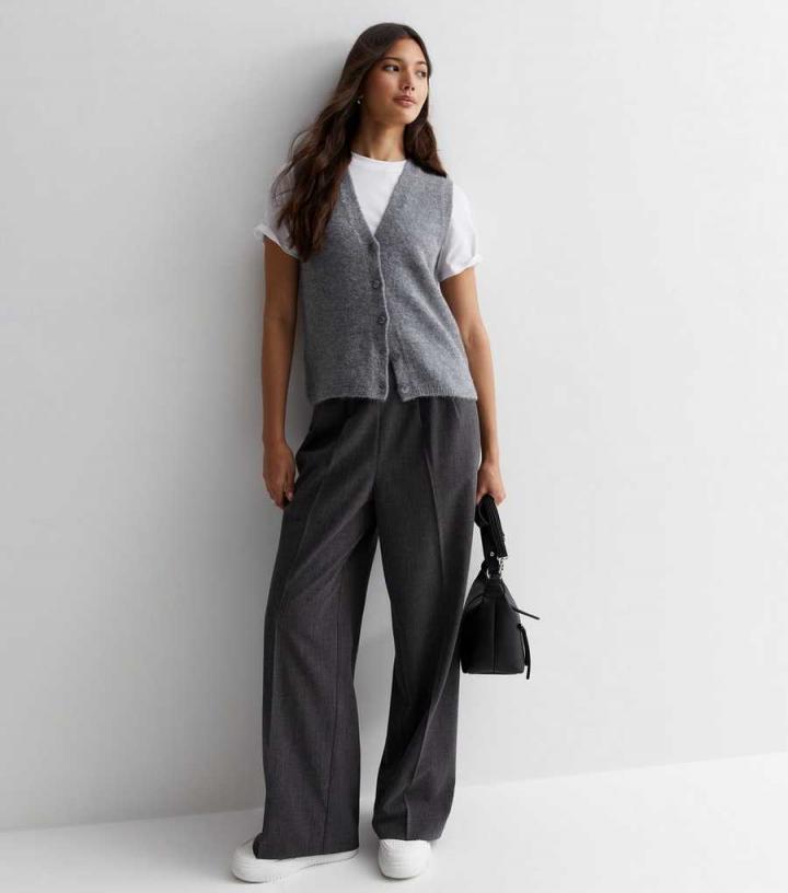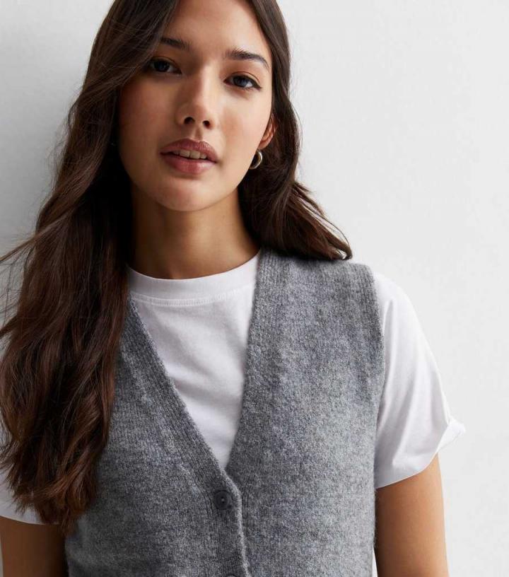 Jumpers & Cardigans | New Look Womens Grey Knit Button Front Vest