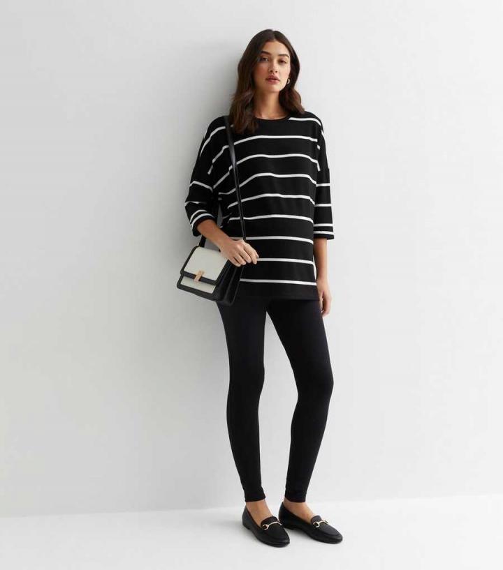 Jumpers & Cardigans | New Look Womens Maternity Black Stripe Fine Knit 3/4 Sleeve Top