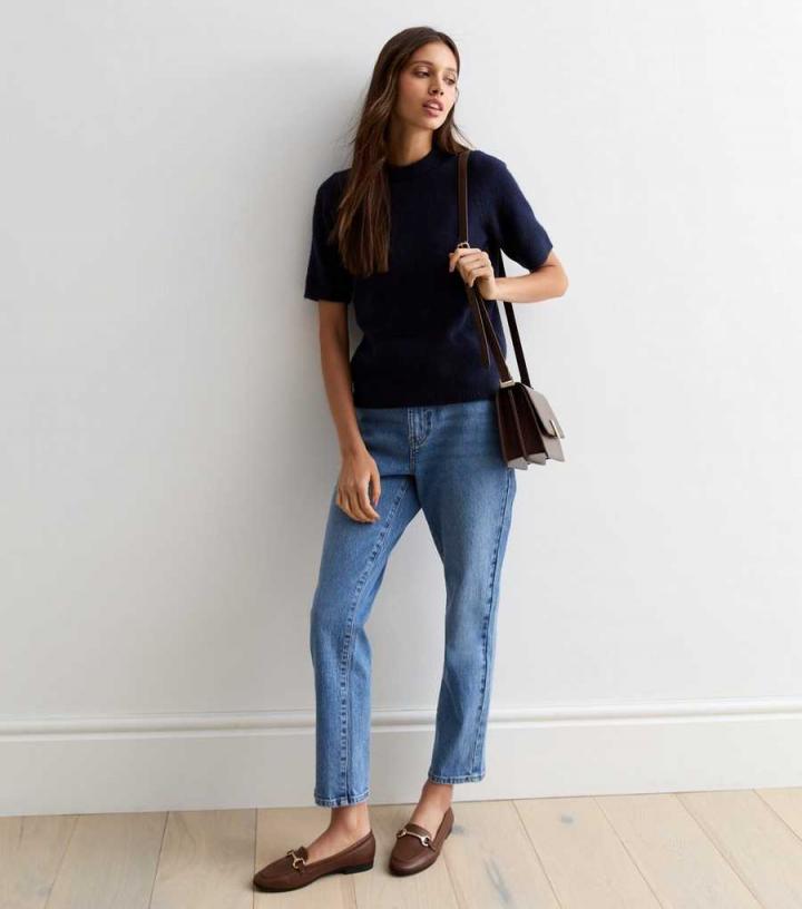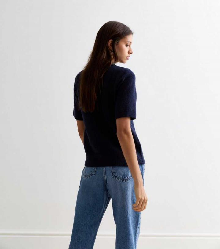 Jumpers & Cardigans | New Look Womens Navy Short Sleeve Knitted Top