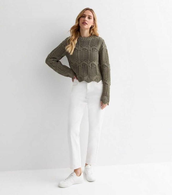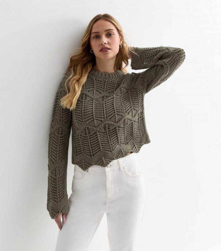 Designed in a chunky stitch knit fabric with a scalloped hem, this olive jumper is a pretty pick for autumn. Team it with jeans and chunky boots for an effortless, warm-weather fit. – Cream- Crew neckline- Lo…