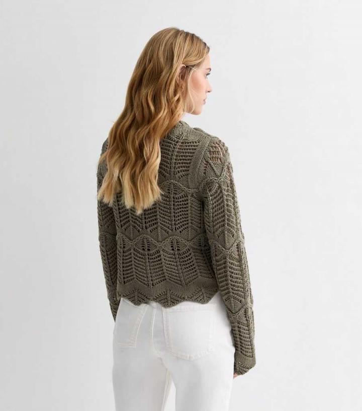 Designed in a chunky stitch knit fabric with a scalloped hem, this olive jumper is a pretty pick for autumn. Team it with jeans and chunky boots for an effortless, warm-weather fit.