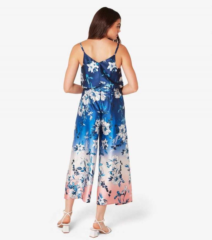 Jumpsuits & Playsuits | New Look Womens Apricot Navy Ombré Floral Satin Split Leg Jumpsuit