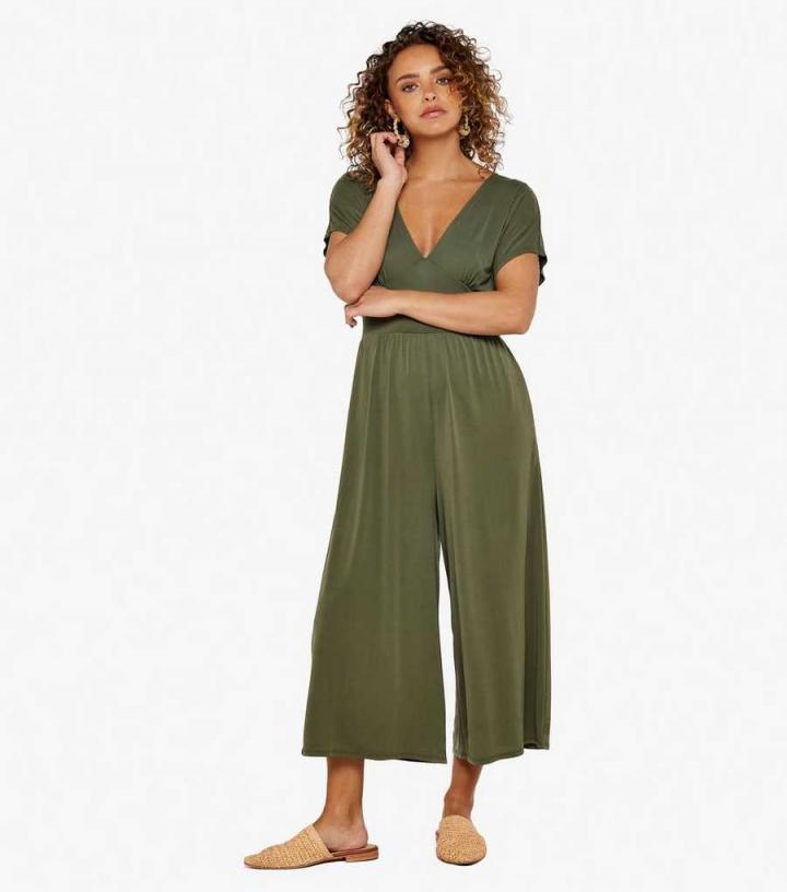 Jumpsuits & Playsuits | New Look Womens Apricot Olive Short Sleeve Wide Leg Cropped Jumpsuit
