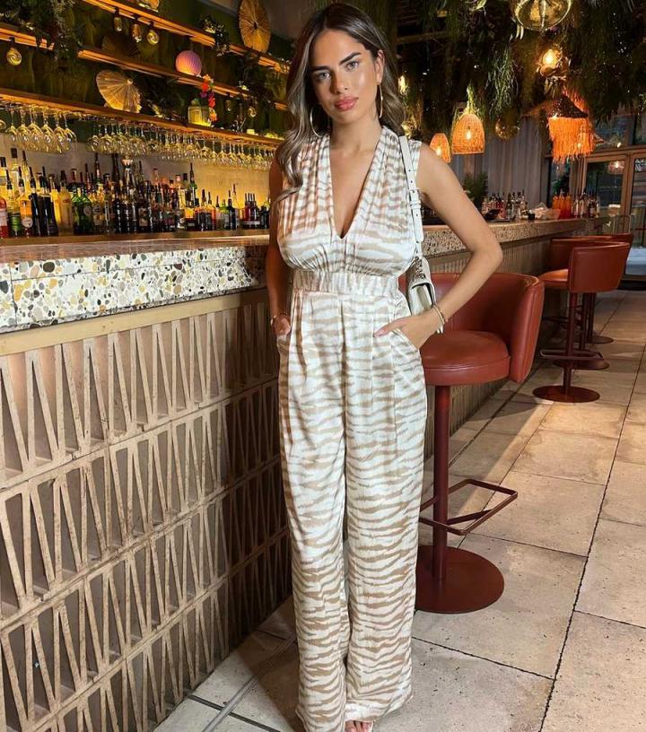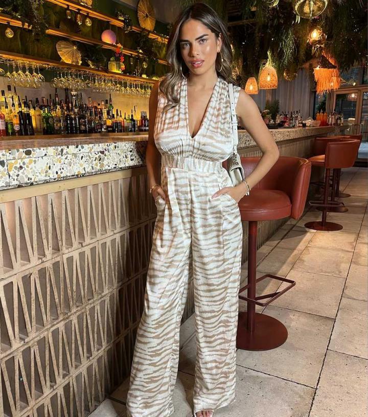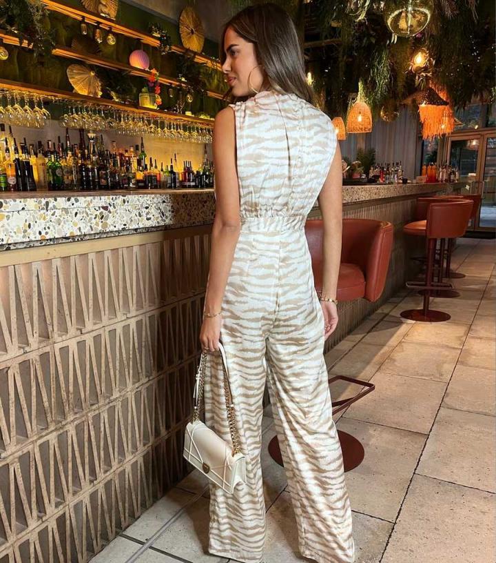 – AX Paris – Stone/off white- Animal pattern- V-neck- Sleeveless- Fitted waist- Side slit pockets- Straight leg Product Code:…