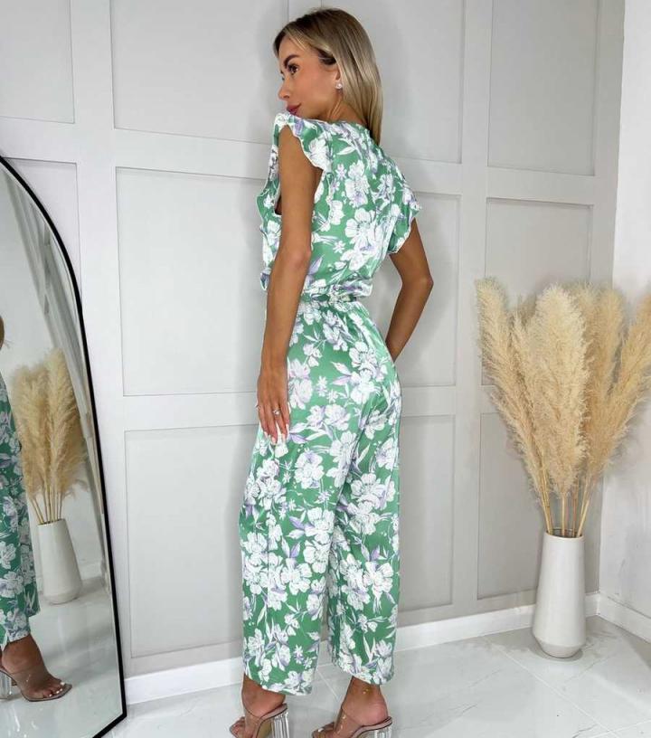 Jumpsuits & Playsuits | New Look Womens AX Paris Green Floral Belted Jumpsuit