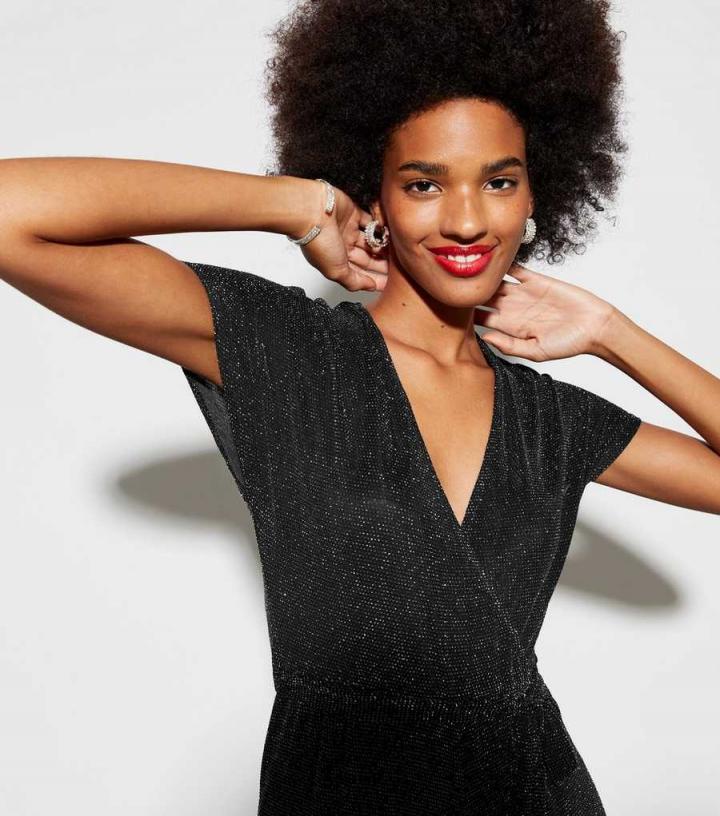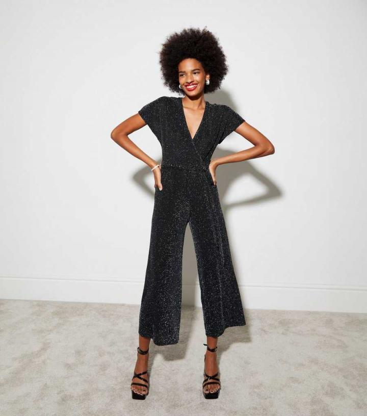 Jumpsuits & Playsuits | New Look Womens Black Glitter Wide Leg Jumpsuit