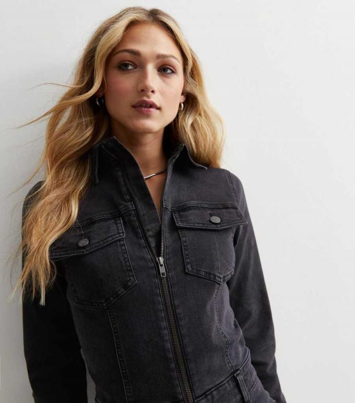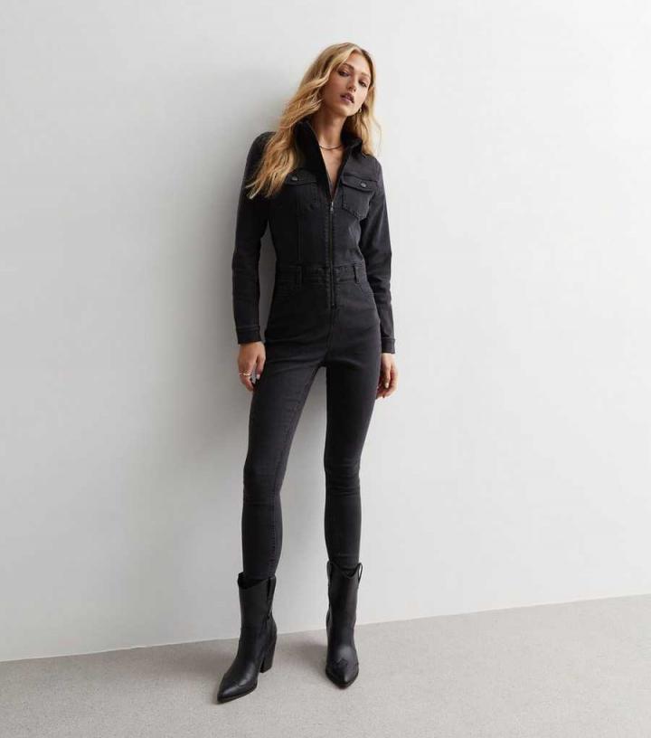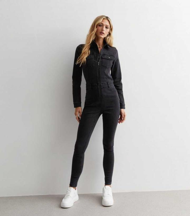 Want a piece that’s comfy and stylish? Opt for this back denim jumpsuit, designed in a slim fit with long sleeves and – Collared neckline- Long cuffed sleeves- Belt loops- Front, side and back pockets- Zip-fly fastening- Straight leg- Slim fit- Model is 5’8"/173cm and wears UK 8/EU 36/US 4