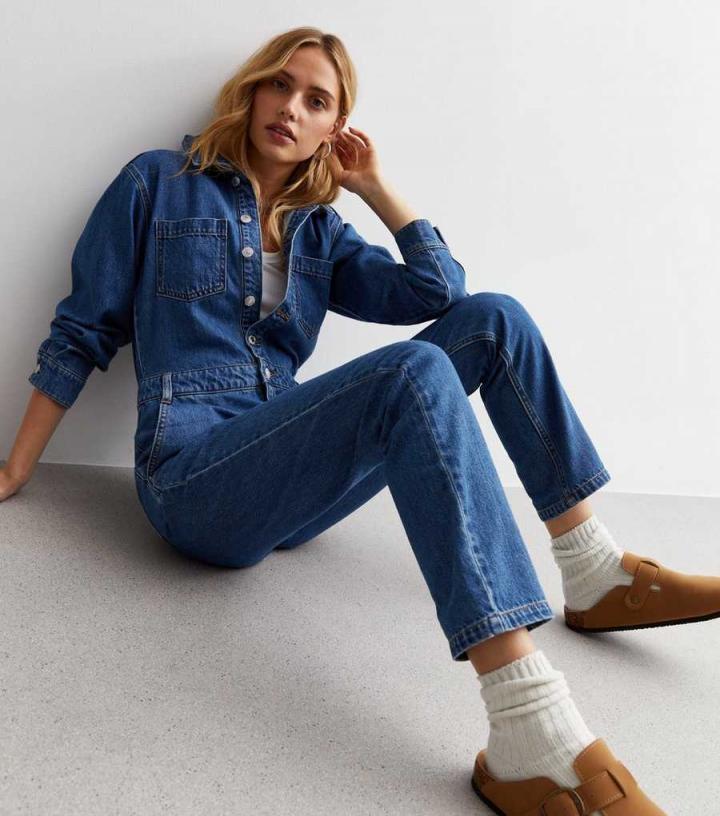 Searching for effortless style? This blue denim jumpsuit is sure to be your new-season go-to. Team it with chunky boots, or lift the look with square toe heels.