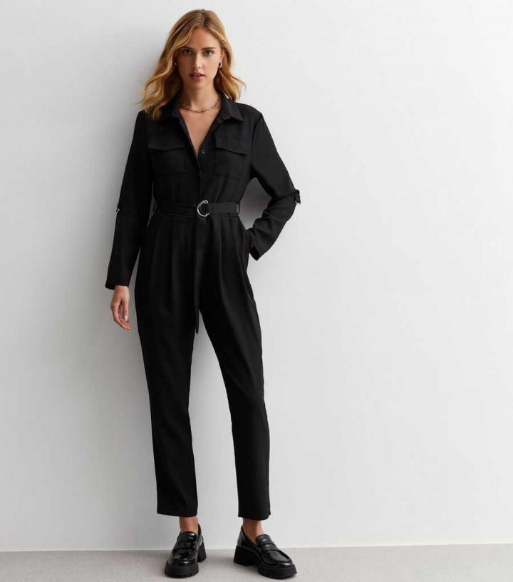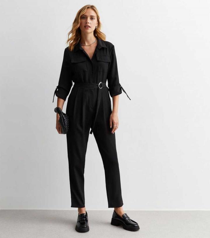 Cameo Rose. As timeless as it is trendy, this black utility jumpsuit is the perfect pick for off-duty plans. Partner with trainers or heels and take your look from day to night in an instant.