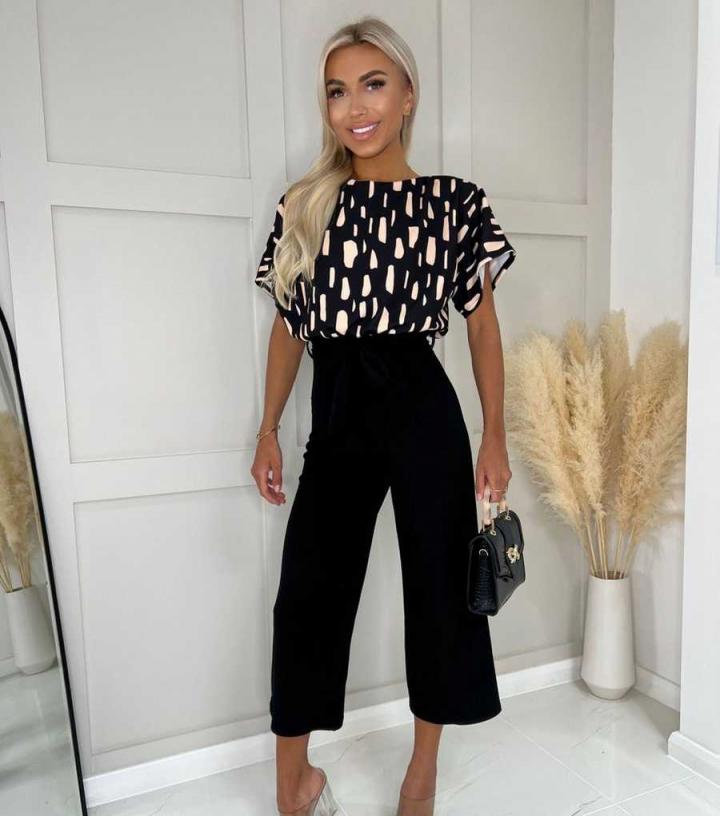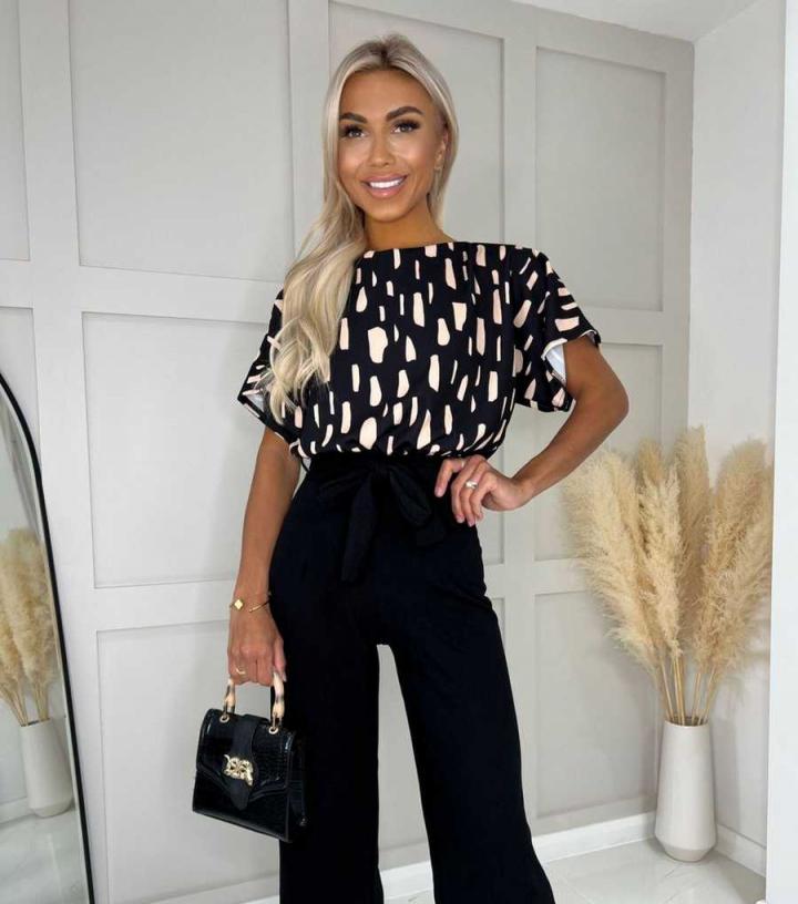 Missfiga. Elevate your new season edit with this black jumpsuit. Designed in an abstract print with a wide leg, it pairs perfectly with strappy heels and a clutch for a fit that’s sure to turn heads.