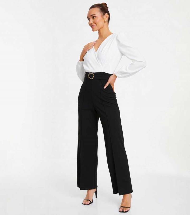 QUIZ. Designed with a wrap front and belted waist, this black jumpsuit creates a flattering silhouette for every occasion.