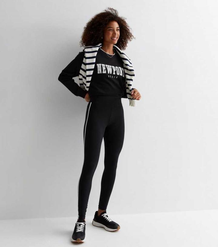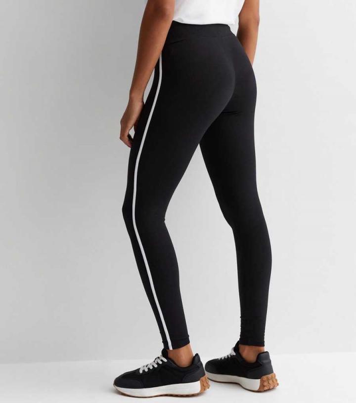 Never not comfy and never not cute, go for these black stripe leggings. Style with chunky trainers and a cap for that sporty off-duty look.- High waist- Side stripe- Stretchy cotton blend- Skinny fit- Model is 5’9.5/177cm and wears UK 10/EU 38/US 6