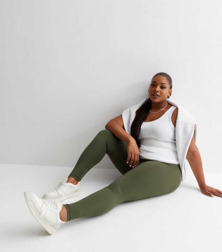 Leggings | New Look Womens Curves Khaki High Waist Sports Leggings