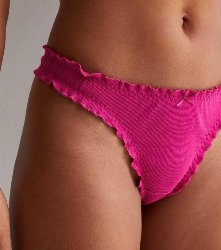 Lingerie | New Look Womens 2 Pack Black and Pink Cotton Frill Thongs