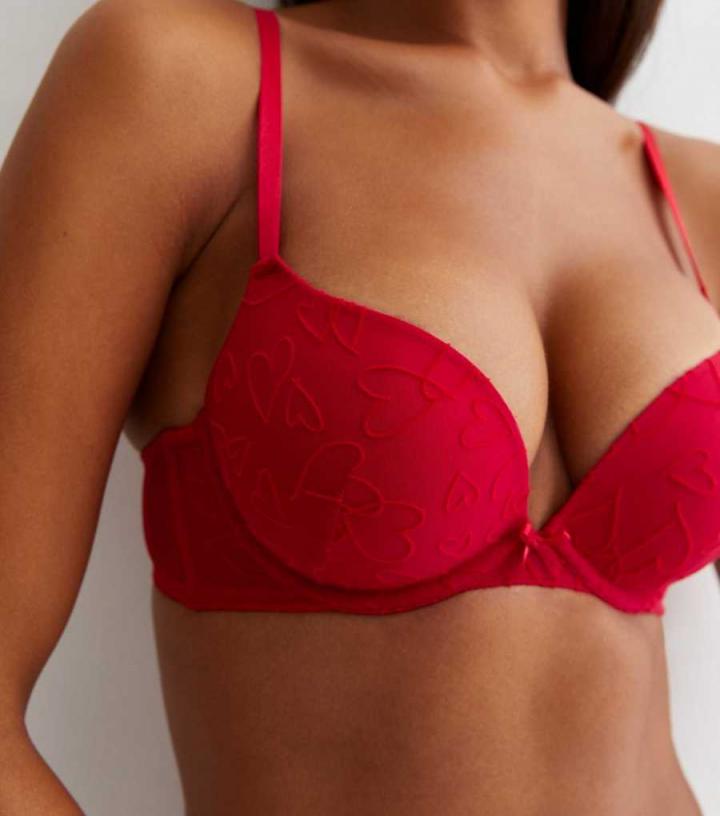 Lingerie | New Look Womens 2 Pack Black and Red Flocked Heart Print Push Up Bras