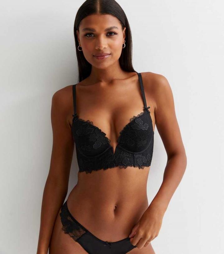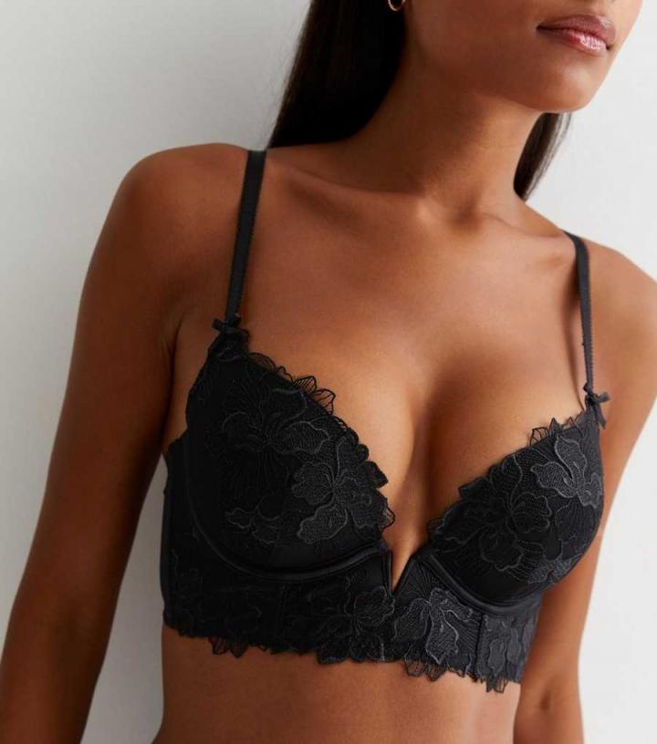 Lingerie | New Look Womens Black Floral Embroidered Push Up Corset Bra