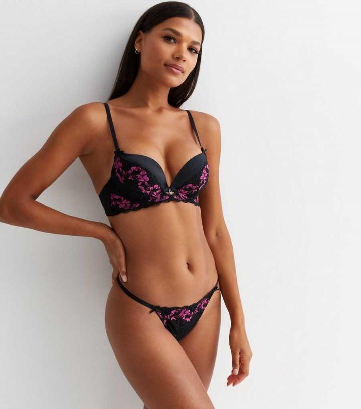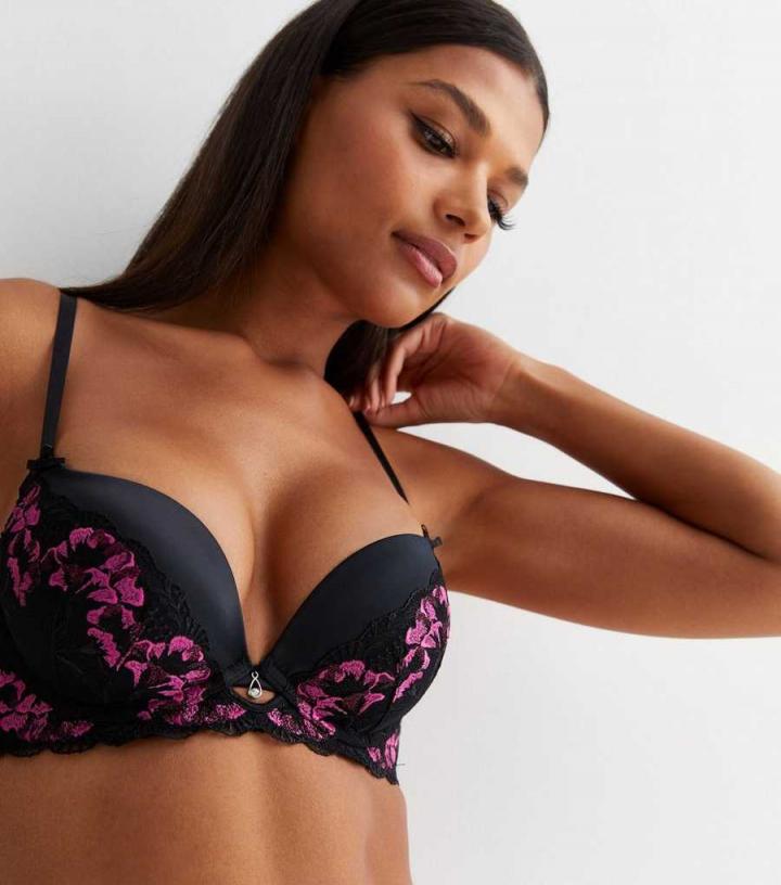 Lingerie | New Look Womens Black Floral Glitter Embroidered Keyhole Push Up Bra
