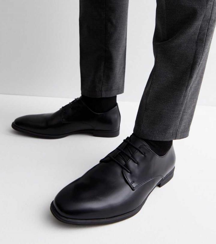 Mens Black Lace Up Rounded Brogues New Look…