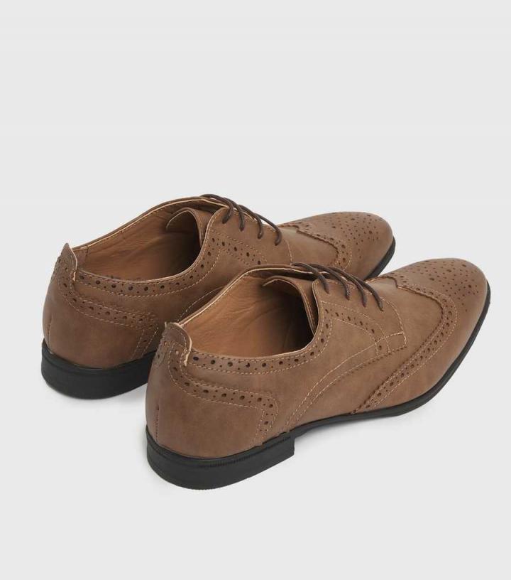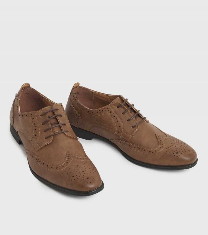 Mens Dark Brown Perforated Lace Up Brogues New Look…
