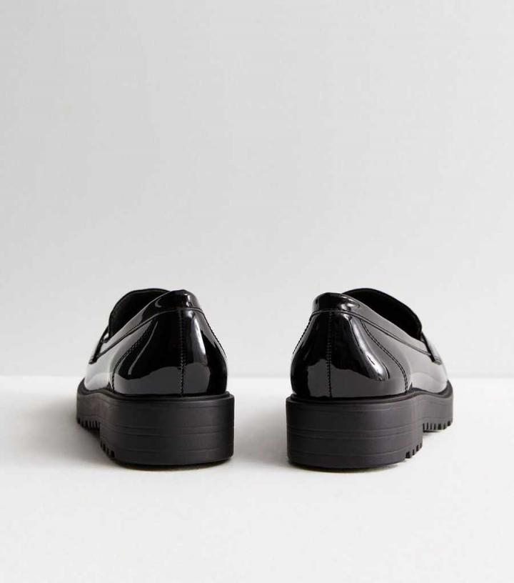 Loafers | New Look Womens Wide Fit Black Patent Chunky Loafers