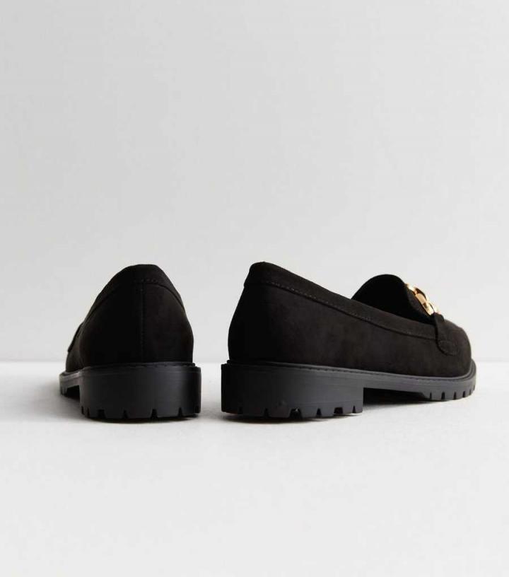 Loafers | New Look Womens Wide Fit Black Suedette Gold Chain Chunky Loafers