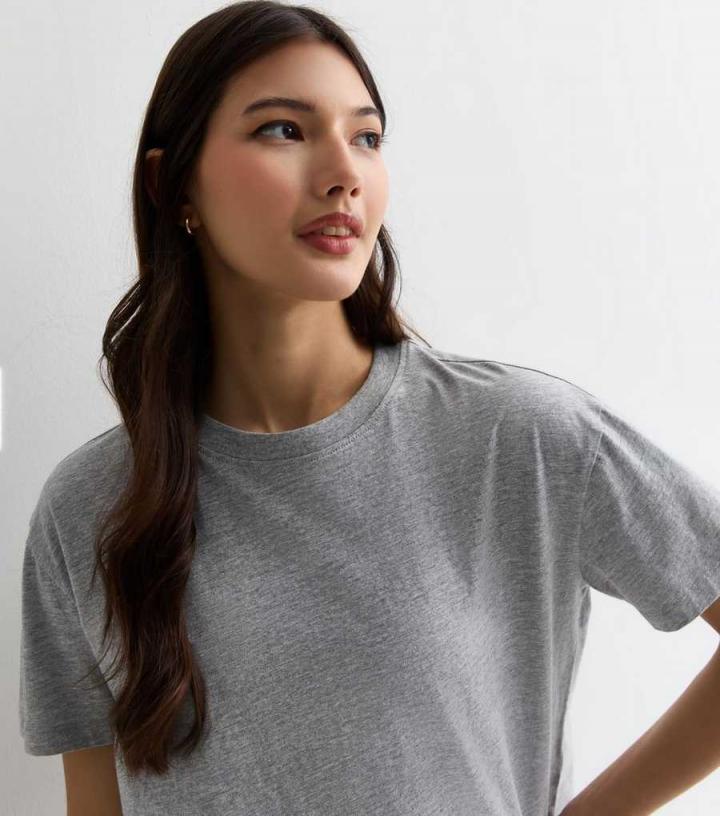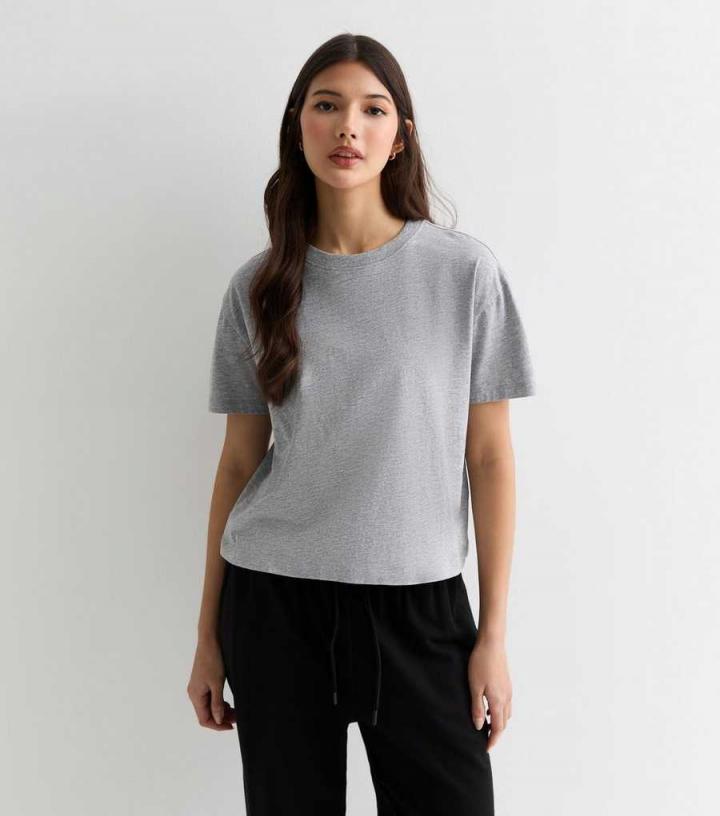 Lounge & Sports | New Look Womens Grey Marl Cotton Crew Neck Boxy T-Shirt