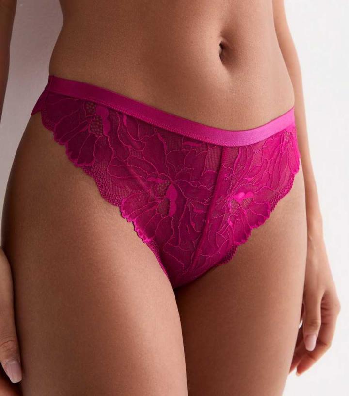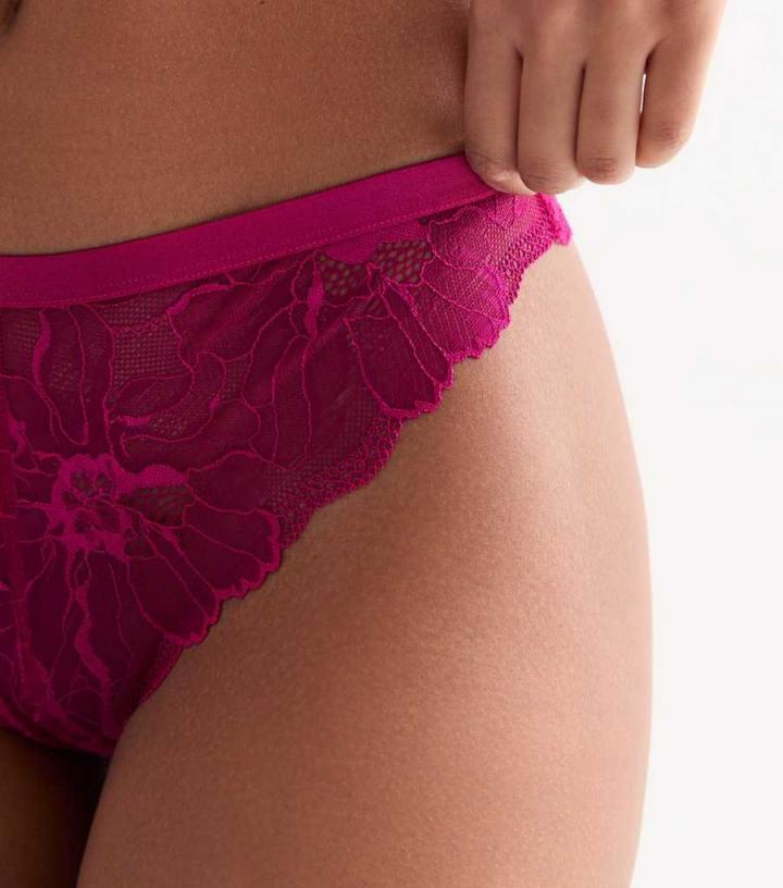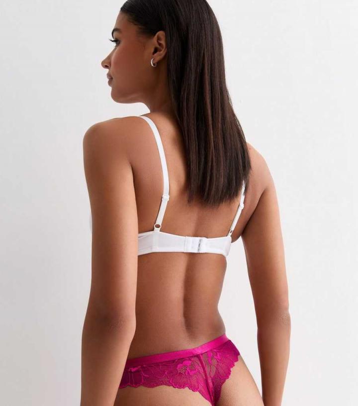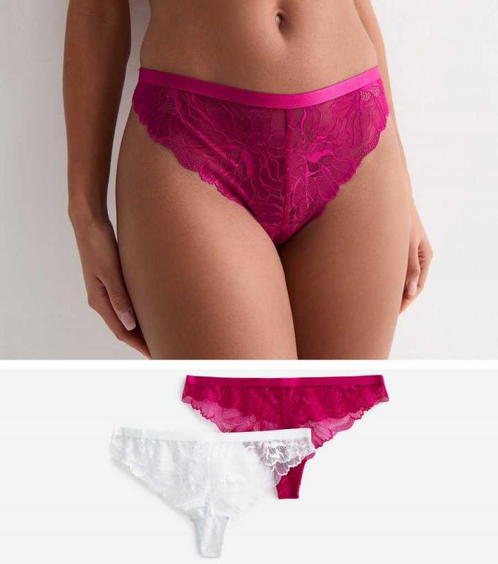 Designed in a lace fabric, add delicate details to your lingerie collection with these pink and white thongs.