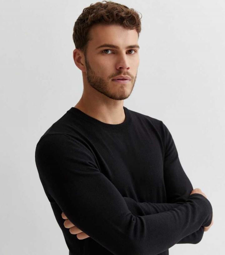 Muscle Fit | New Look Mens Black Fine Knit Muscle Fit Jumper