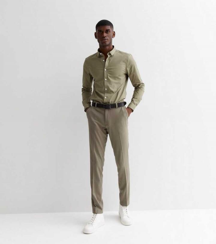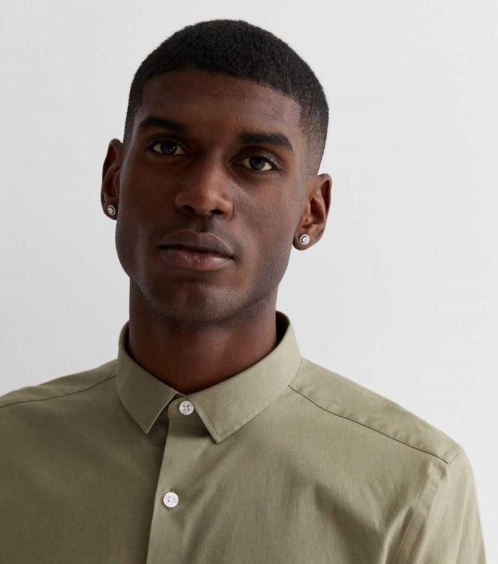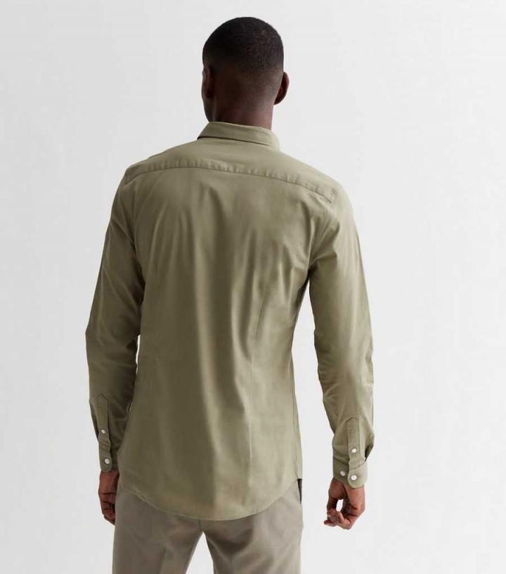 Mens Olive Poplin Long Sleeve Muscle Fit Shirt New Look…