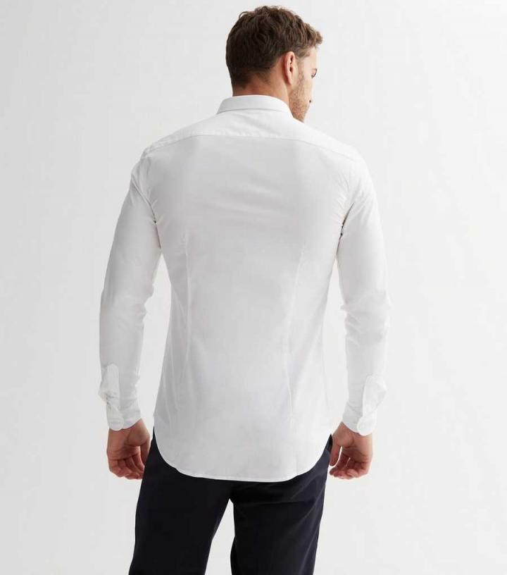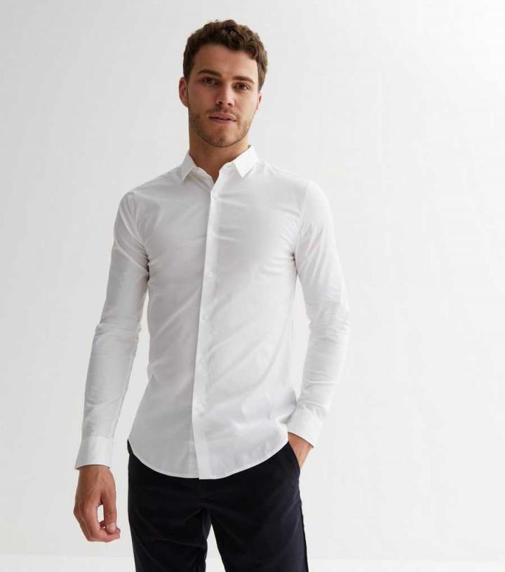Mens White Poplin Long Sleeve Muscle Fit Shirt New Look