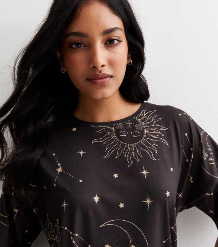 Drift off to slumberland in these black celestial pyjamas, designed in a super-soft jersey fabric.