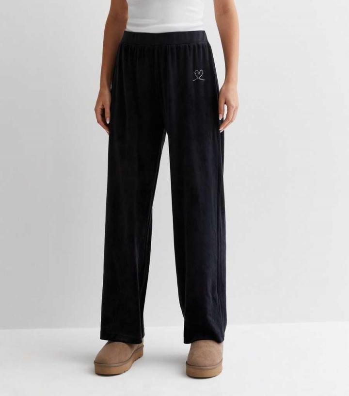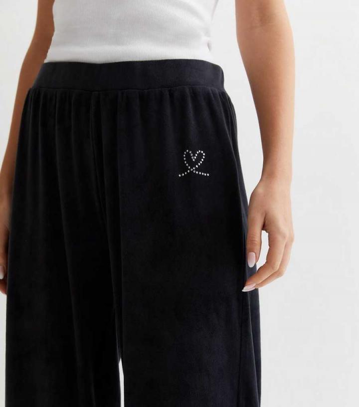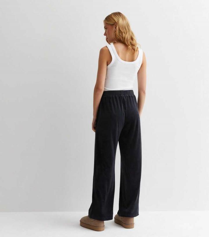 Crafted from a soft velour fabric, these black trousers are a cool and comfy pick. Designed in a wide leg style, they can be paired with a cosy hoodie on lazy days or styled up with a cropped cami and trainers for afternoons out.