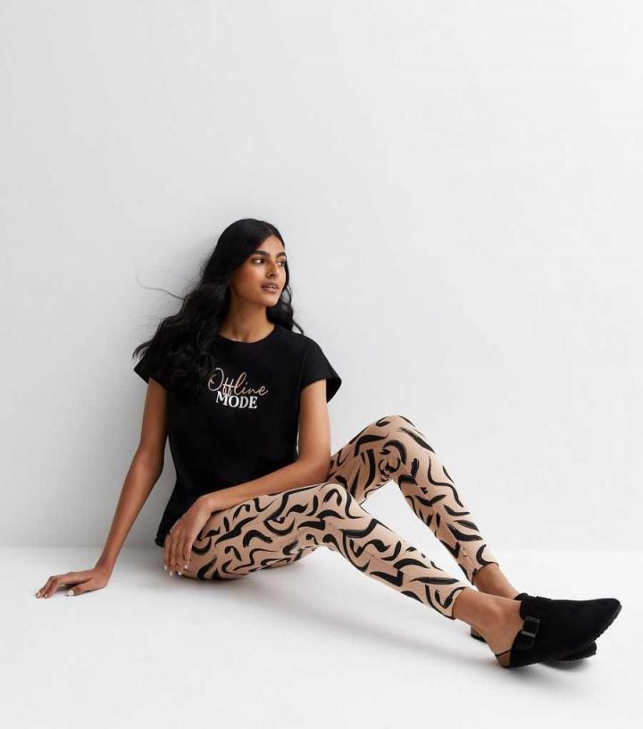 Keep it casual in this brown legging set, featuring an "Offline Mode" logo and statement swirl print. It’s the perfect fit for days spent on the sofa.