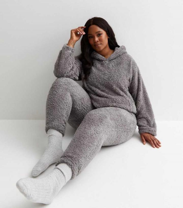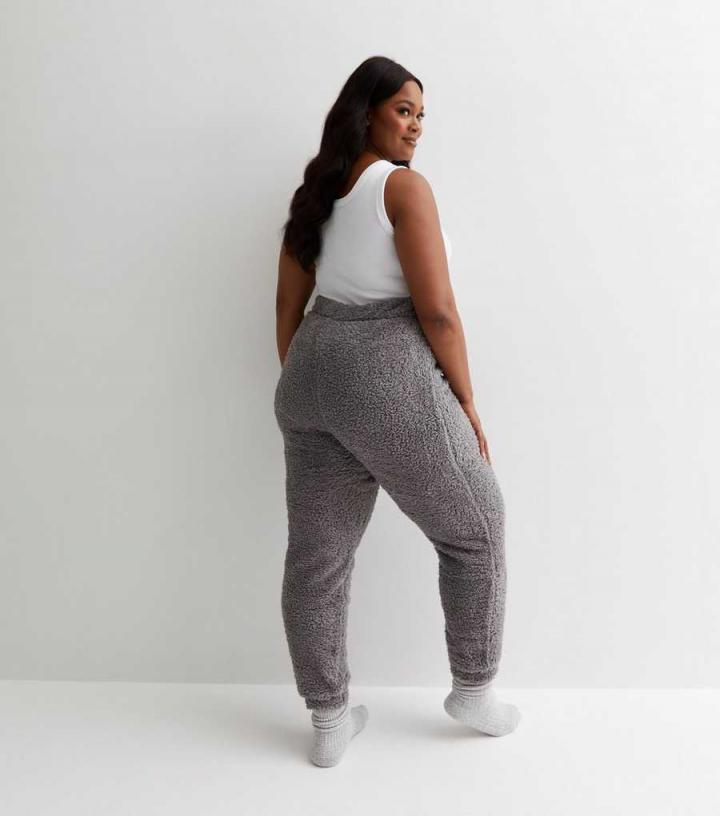Nightwear & Loungewear | New Look Womens Curves Grey Borg Cuffed Joggers