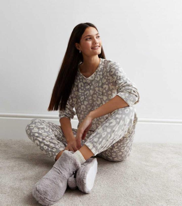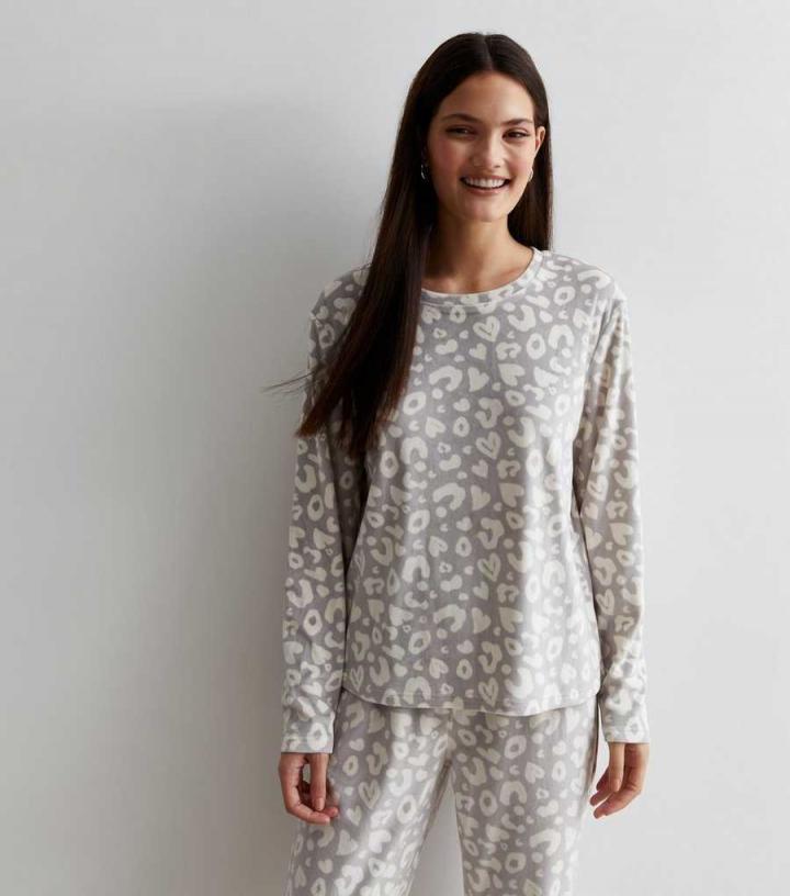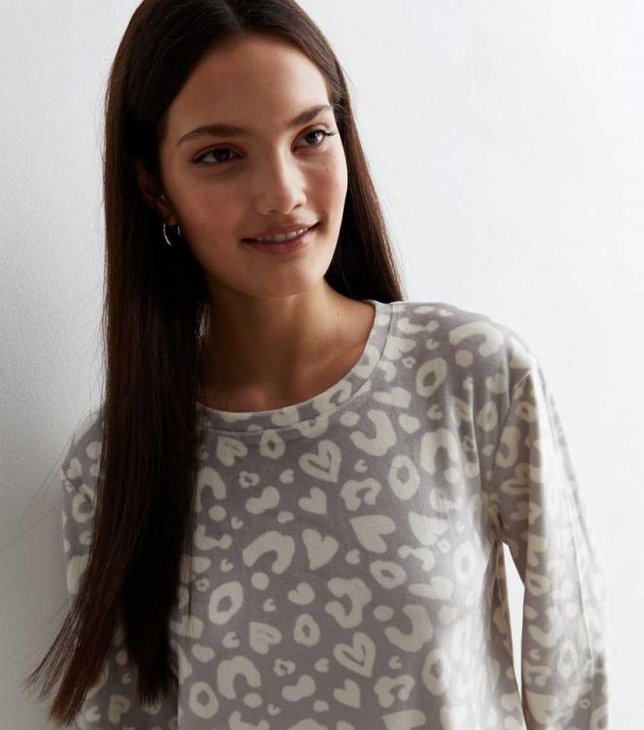 Soft and super-comfy, update your sleepwear collection with this light grey animal print sweatshirt. For the ultimate lounge day fit, pair with the matching fleece joggers.