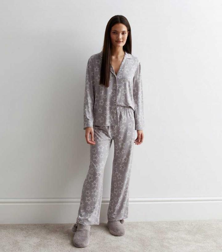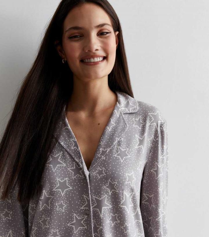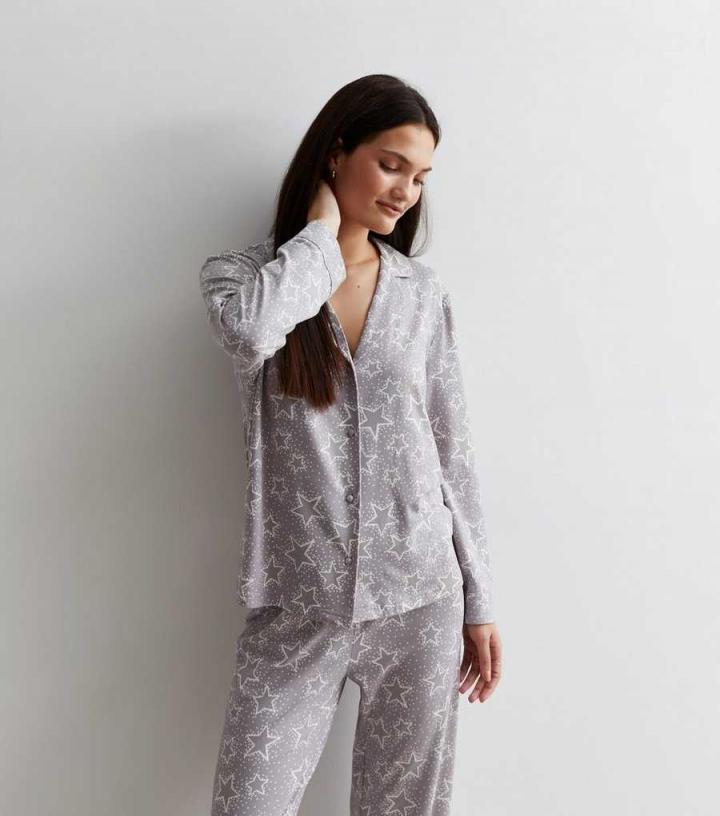 Introducing this light grey revere pyjama set, the perfect pick for lazy weekends and cosy evenings. Boasting an all-over star print, we’re sure you’ll reach for it time and time again.
