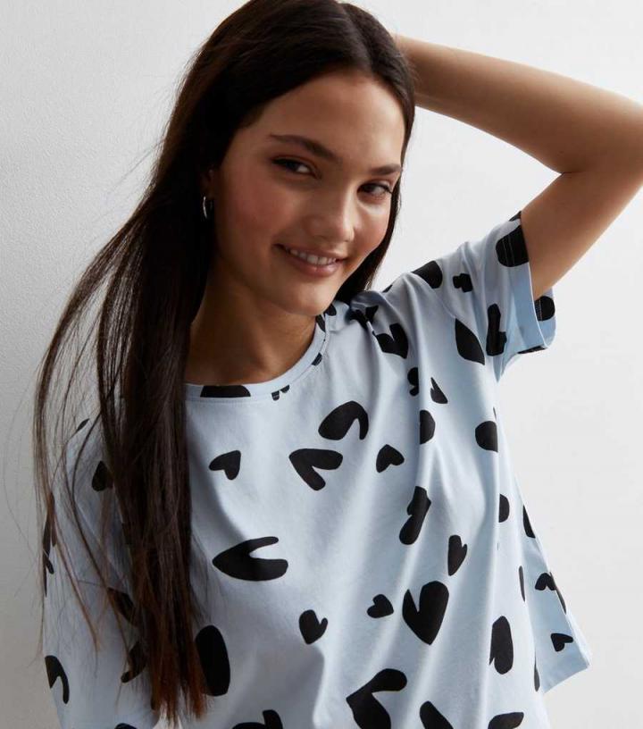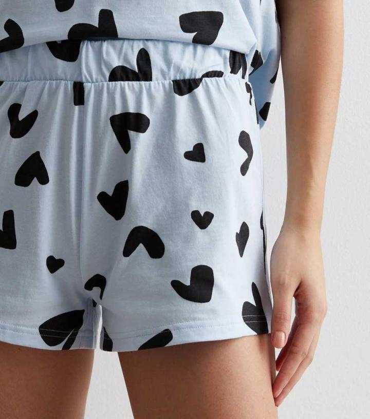 Nightwear & Loungewear | New Look Womens Pale Blue Cotton Short Pyjama Set with Heart Print
