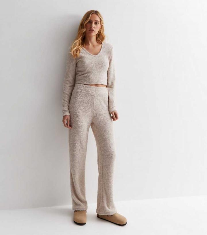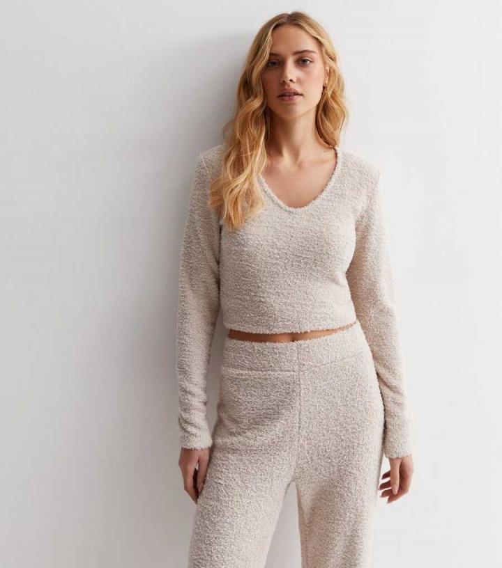 Nightwear & Loungewear | New Look Womens Stone Teddy V Neck Long Sleeve Pyjama Top
