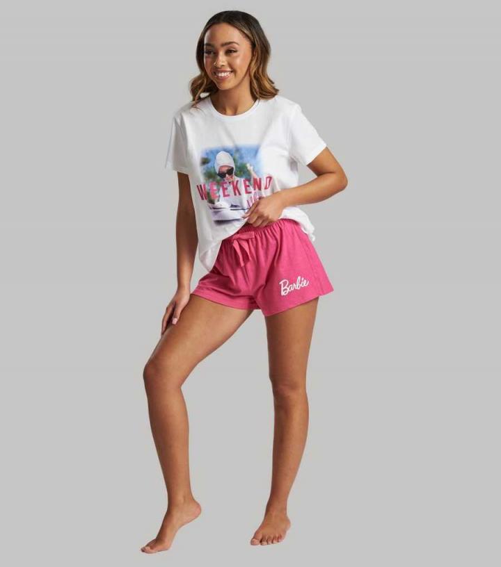 Nightwear | New Look Womens Loungeable White Short Pyjama Set with Barbie Logo