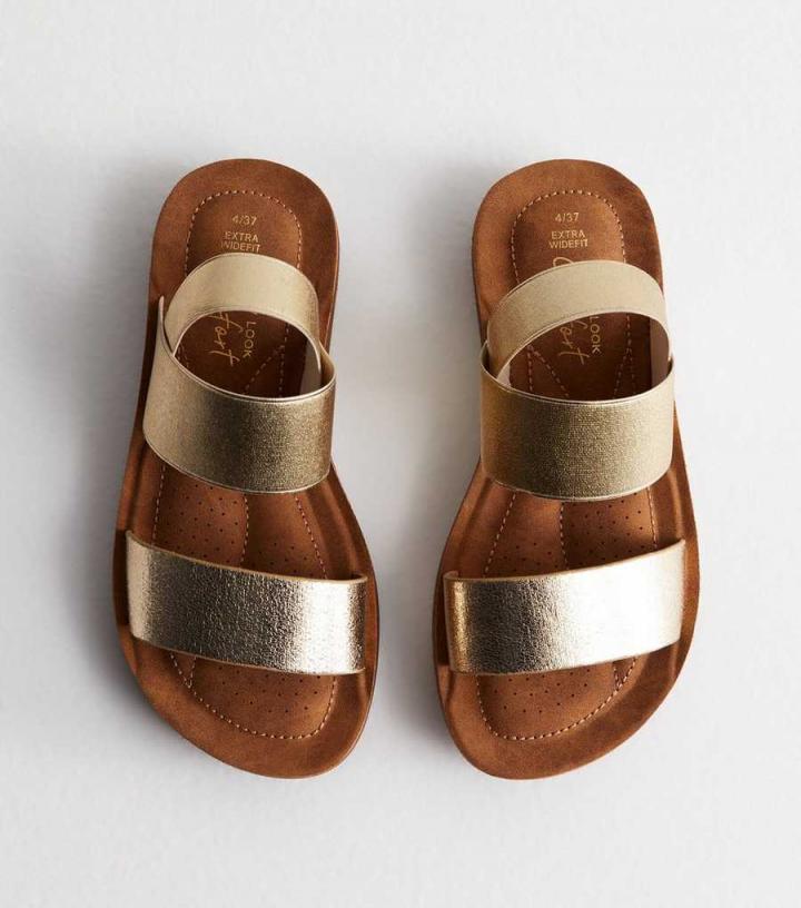Sandals | New Look Womens Extra Wide Fit Gold Metallic Chunky Sandals