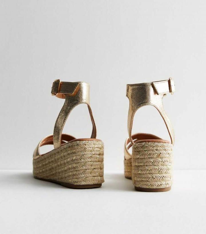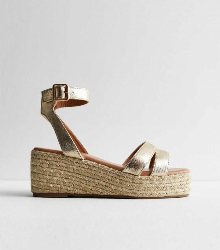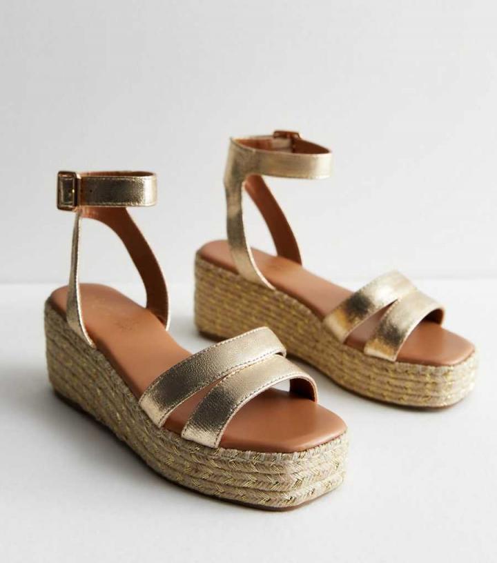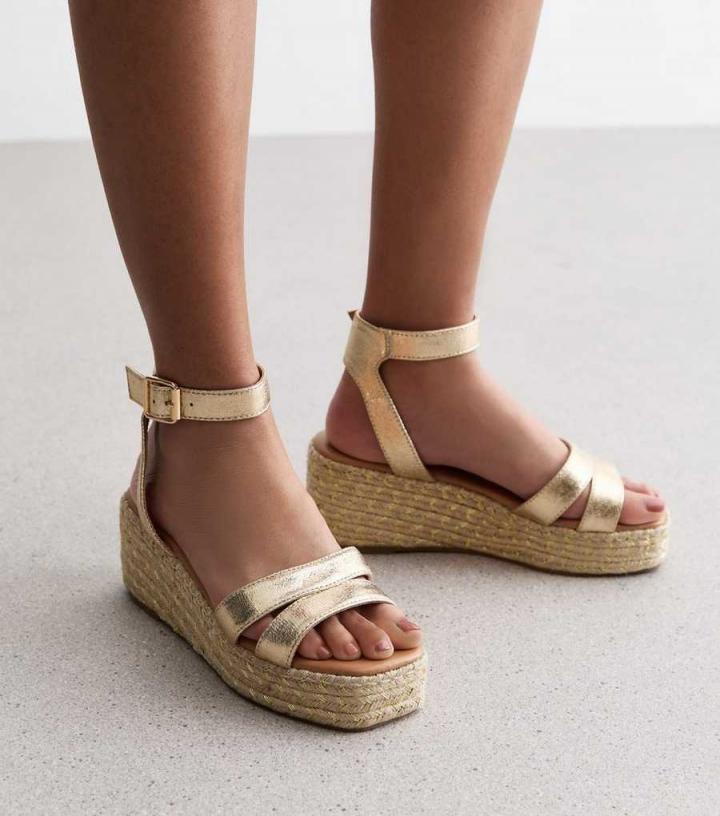 Elevate your warm-weather wardrobe with these gold espadrille sandals. Add to the glam by teaming with your fave summer dress and a medley of gold jewellery.