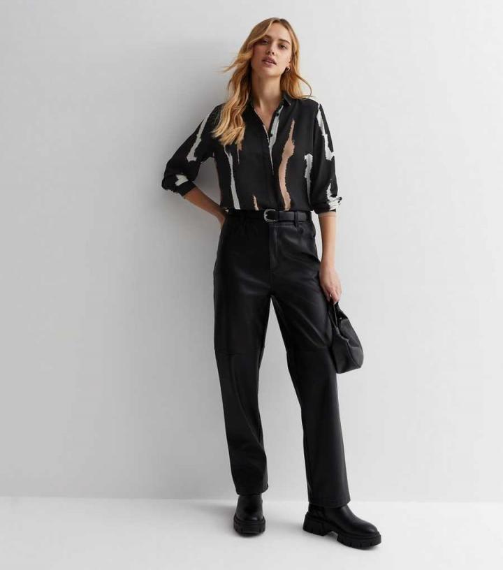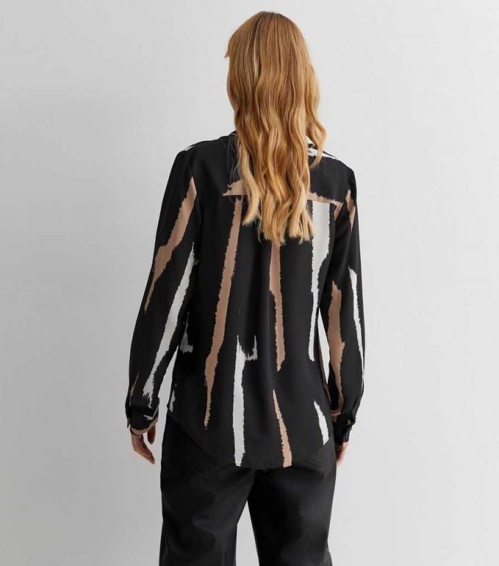 – Black/off white/brown- Abstract pattern- Classic collared neckline- Concealed front button fastening- Long sleeves- Button cuffs- Curved hem- Model is 5’8"/173cm and wears UK 10/EU 38/US 6