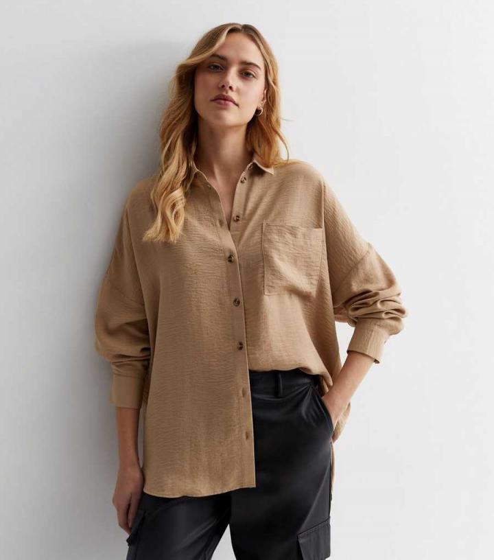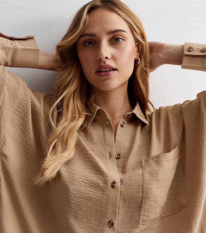 Shirts & Blouses | New Look Womens Camel Long Sleeve Oversized Shirt