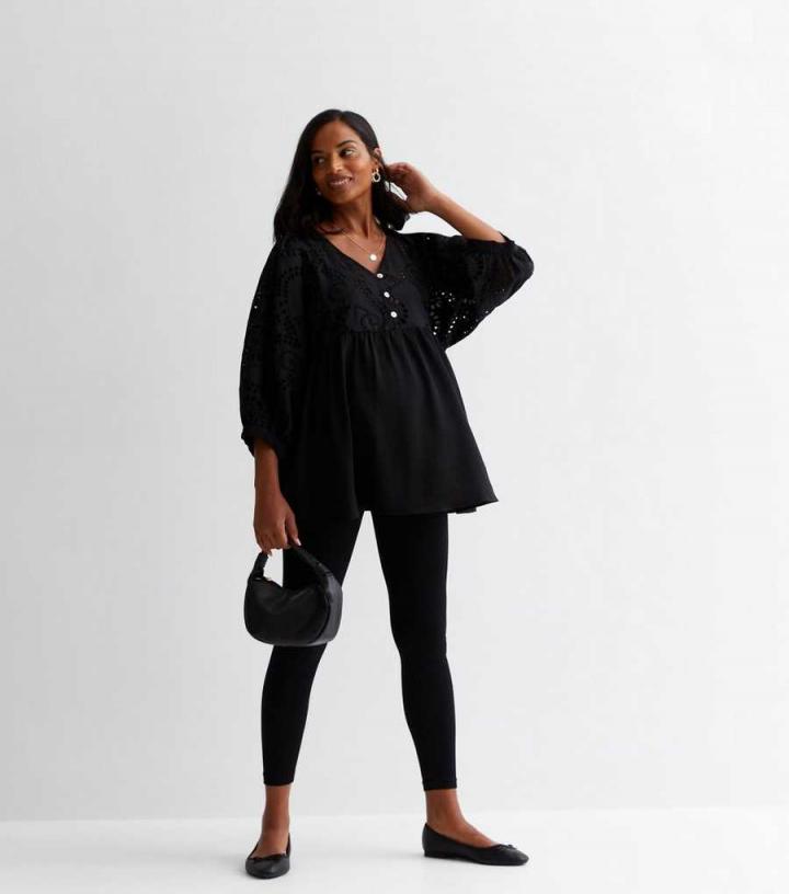 Maternity. From its classic black colourway to its chic three-button design, this beautiful broderie blouse is one you’ll reach for on repeat throughout your pregnancy. Go for an all-black look by teaming with some black maternity leggings and some comfy flats.