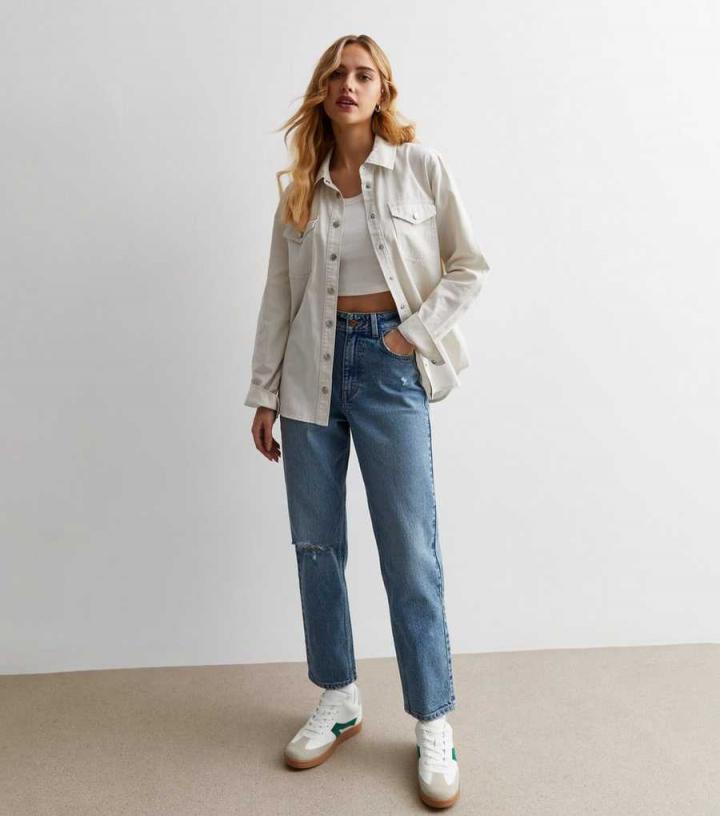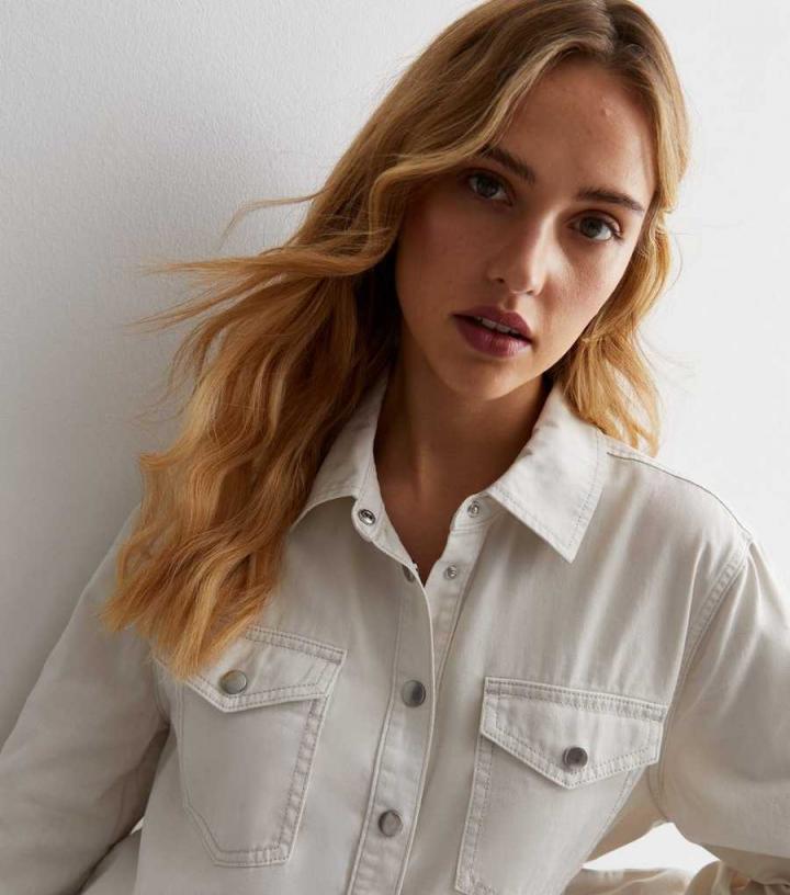 – Off white- Collared neckline- Long sleeves- Double patch pockets- Popper cuffs- Popper fastening- Cotton fabric- Oversized fit- Model is 5’8"/173cm and wears UK 10/EU 38/US 6