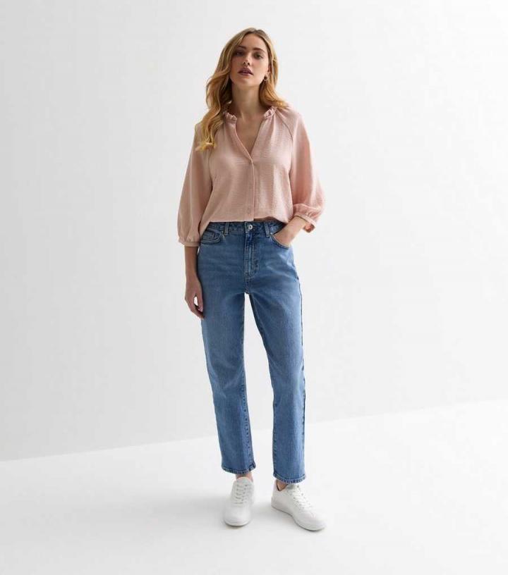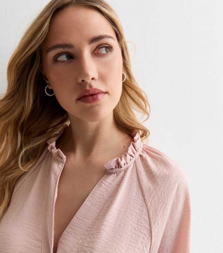 A simple yet stylish addition to your wardrobe, this pale pink blouse features a V neckline and puff sleeves. Team it with everything from jeans to wide leg trousers for endless outfit options.