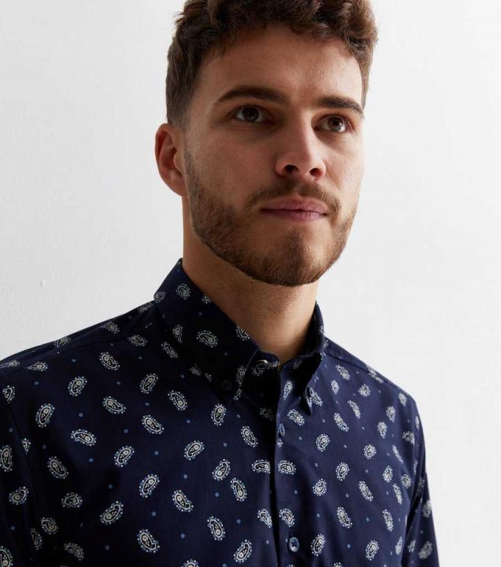 Mens Ben Sherman Navy Paisley Print Cotton Long Sleeve Shirt New Look…