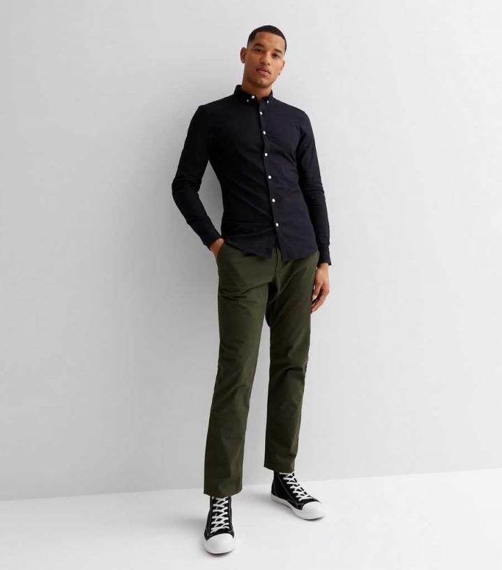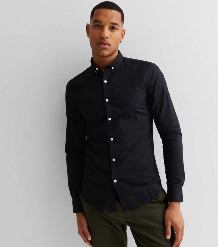 Mens Black Long Sleeve Muscle Fit Oxford Shirt New Look…