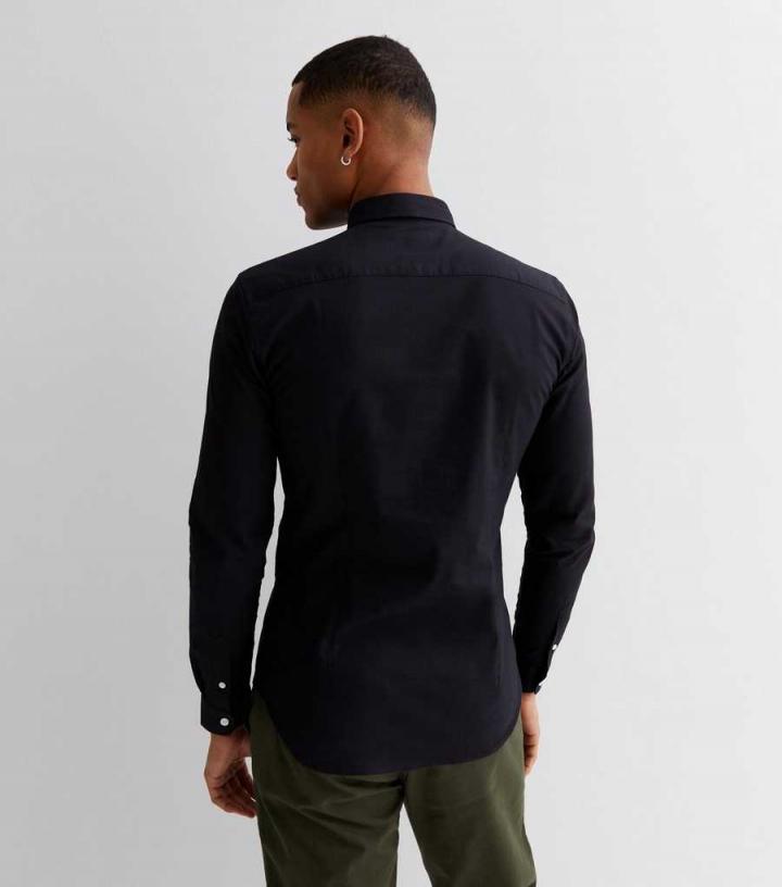 Mens Black Long Sleeve Muscle Fit Oxford Shirt New Look