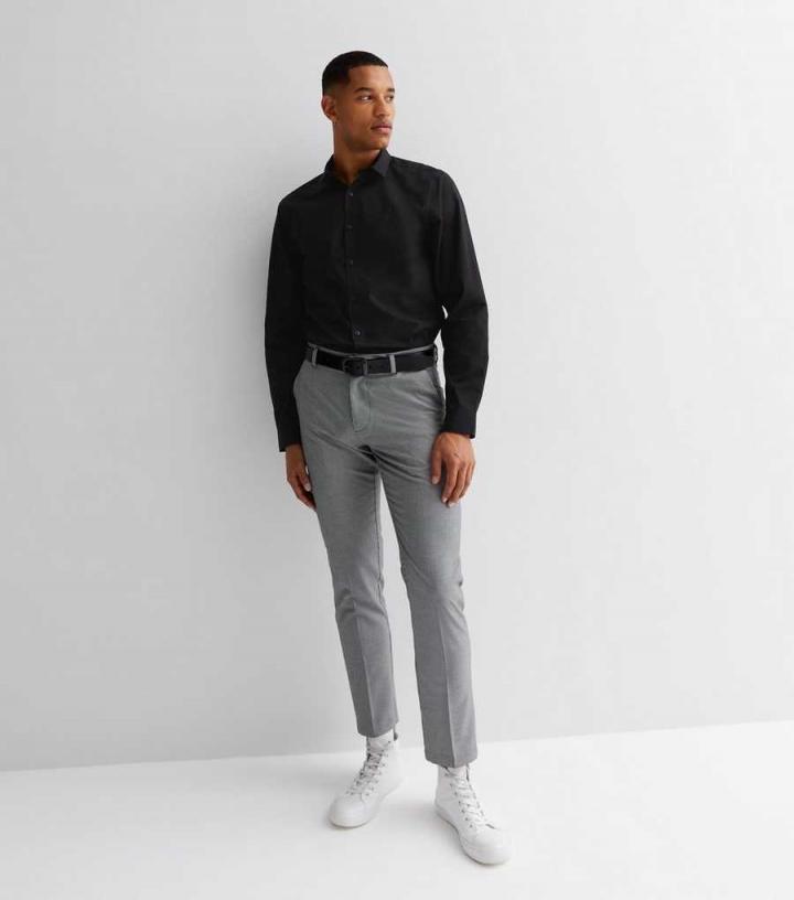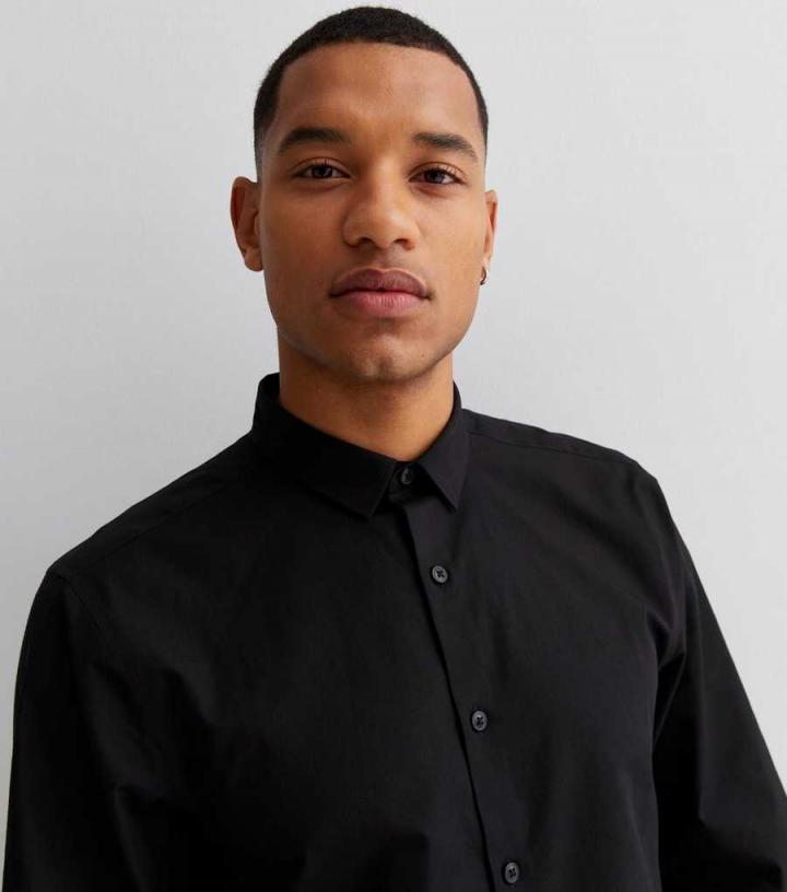 Mens Black Poplin Long Sleeve Regular Fit Shirt New Look…